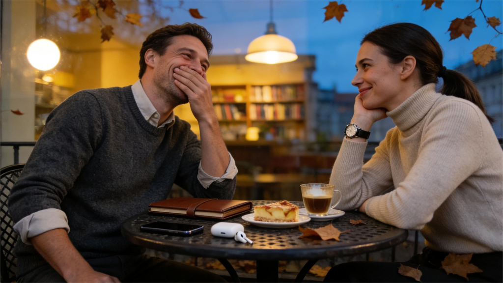 3. Der „Get-It“-Test („Verstehst-du-es?“-Test): Ein subtiler Witz ist ein kleiner Intelligenz- und Perspektiventest. Wenn das Date ihn versteht und erwidert, ist das ein starkes Signal für kognitive und weltanschauliche Kompatibilität. Es ist, als würde man sagen: „Wir sehen einen Teil der Welt auf die gleiche, etwas schräge Weise.“