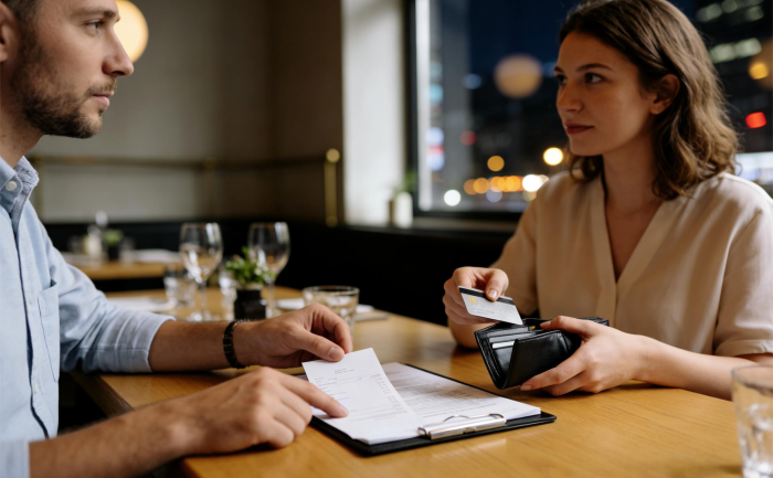 Das Experiment: Die Rechnung kommt. Anstatt sie wortlos an sich zu nehmen oder ein unklares Hin und Her zu starten, sagt …