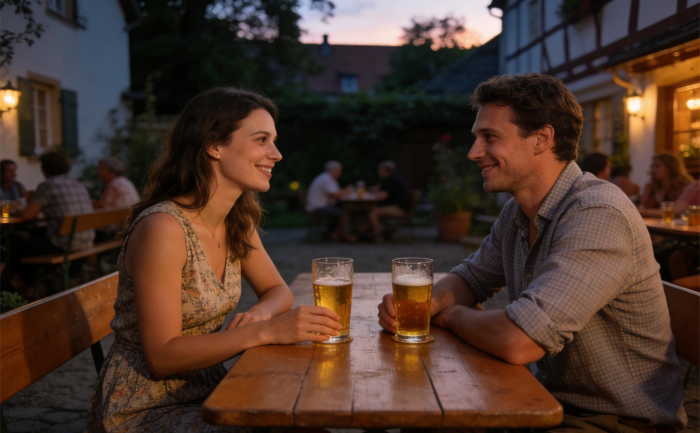 Das Experiment: Ein Date in einer Kneipe oder einem Biergarten. Es wird Alkohol konsumiert, aber das Ziel ist nicht, gemeinsam betrunken …